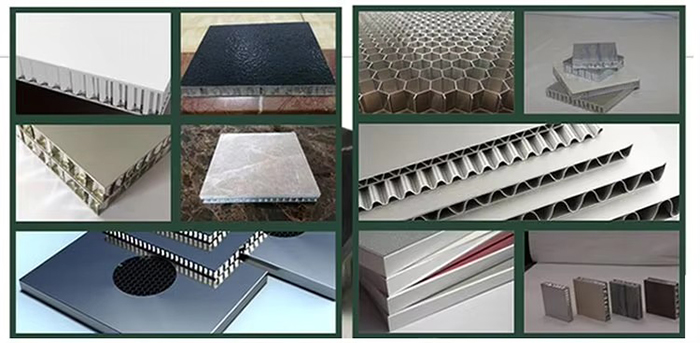 Выбор клея: алюминиевые сотовые панели, изготовленные непрерывным композитным процессом из полиуретана, клея реактивного отверждения на основе эпоксидной смолы или термопластической пленки.