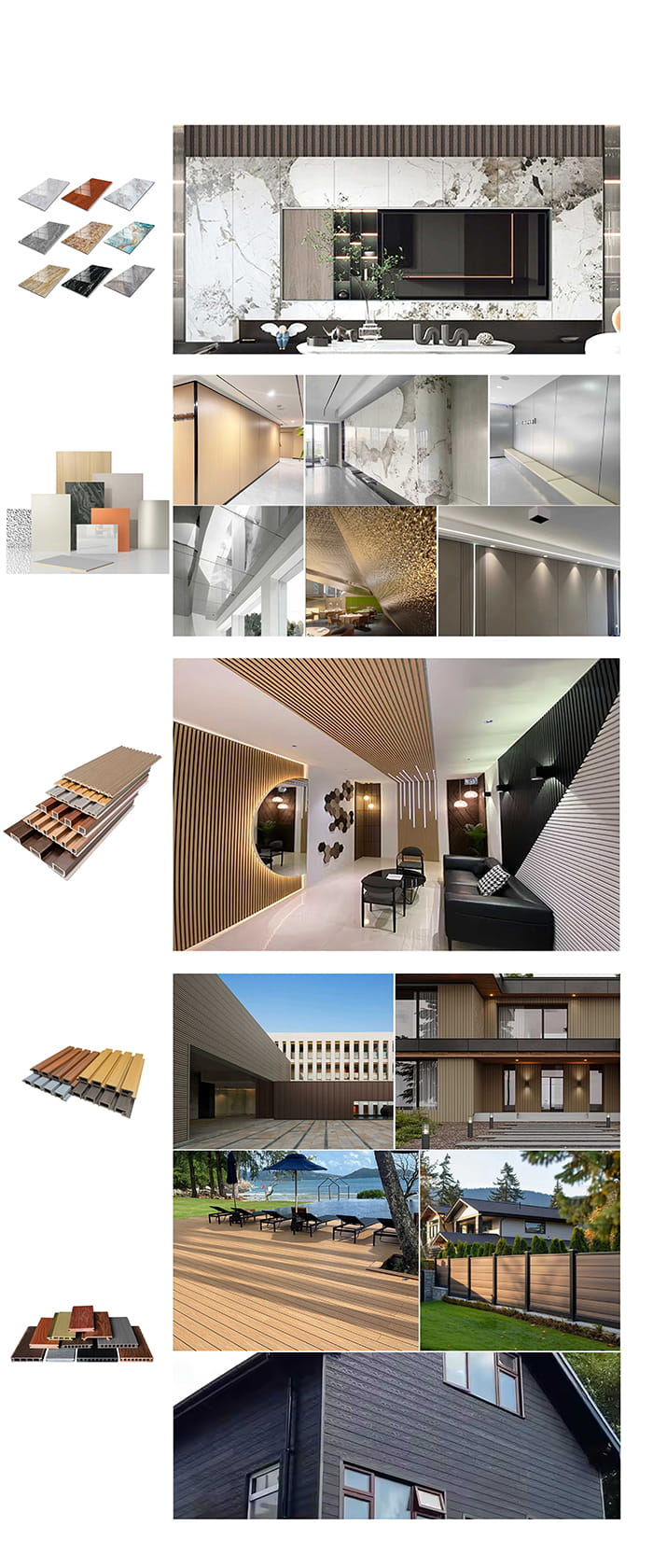 Наша основная продукция включает в себя: потолочные панели из ПВХ, стеновые панели из ПВХ, стеновые панели из ДПК, фольгу для горячего тиснения, ламинирующую пленку из ПВХ, напольные покрытия SPC, настил из ДПК и другие сопутствующие товары. Наш годовой объем продаж может достигать 35 миллионов долларов США.