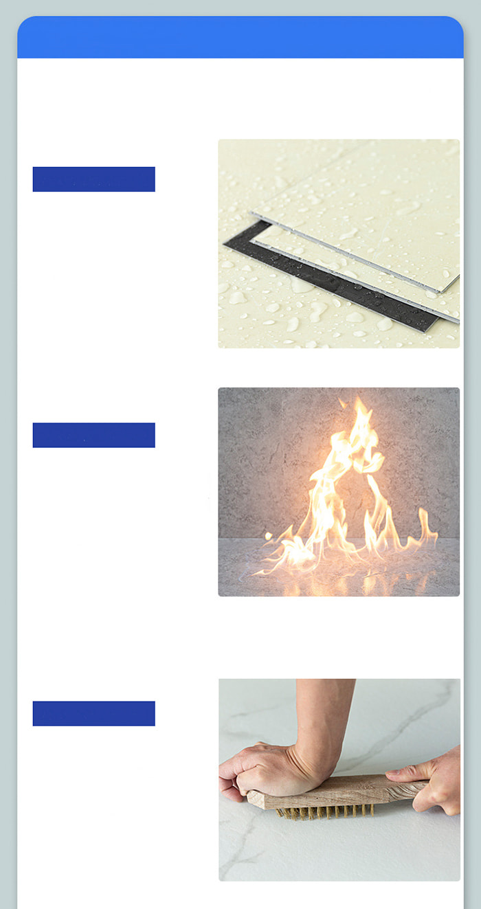 Противоскользящие характеристики: Повышенные противоскользящие свойства при воздействии воды, подходят для общественных мест с высокими требованиями безопасности. Эффект звукоизоляции: Хороший эффект звукоизоляции, который может уменьшить количество шагов.