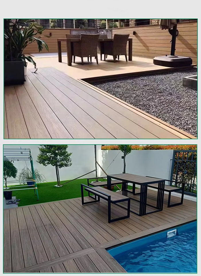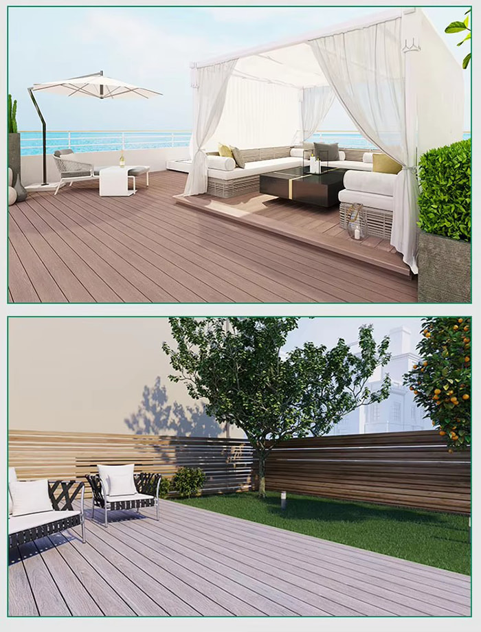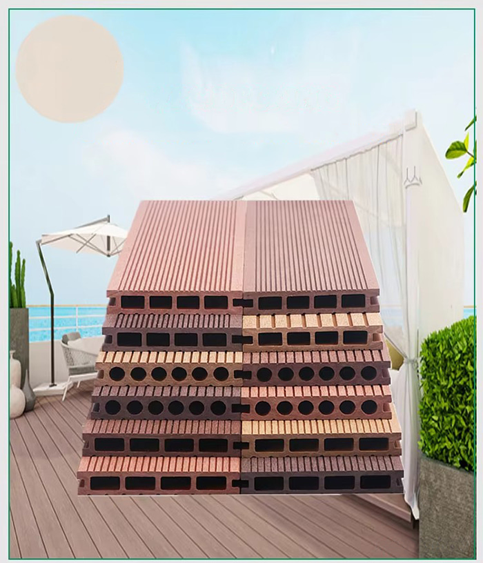 Пол из ДПК (древесно-пластикового композита) — это новый тип экологически чистого пола, изготовленный из древесного волокна или бамбукового волокна в качестве основного сырья, смешанного с ПВХ-смолой, огнезащитным составом и т. д. посредством процесса высокой температуры и высокого давления. Его структура разделена на четыре слоя: износостойкий слой (УФ-покрытие), декоративный слой под дерево/камень, слой армированного волокном основного материала и бесшумный слой. Он имеет как текстуру настоящего дерева, так и водонепроницаемость и влагонепроницаемость пластика и подходит для полноценной отделки пола внутри и снаружи.