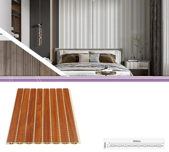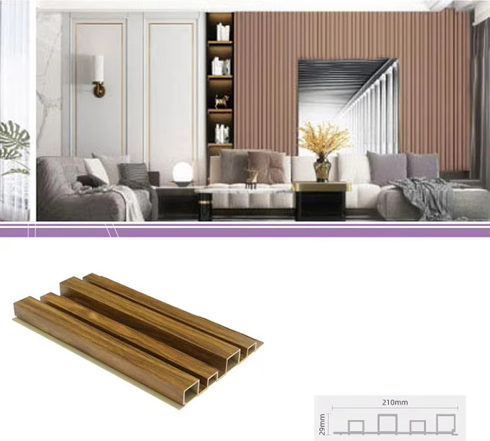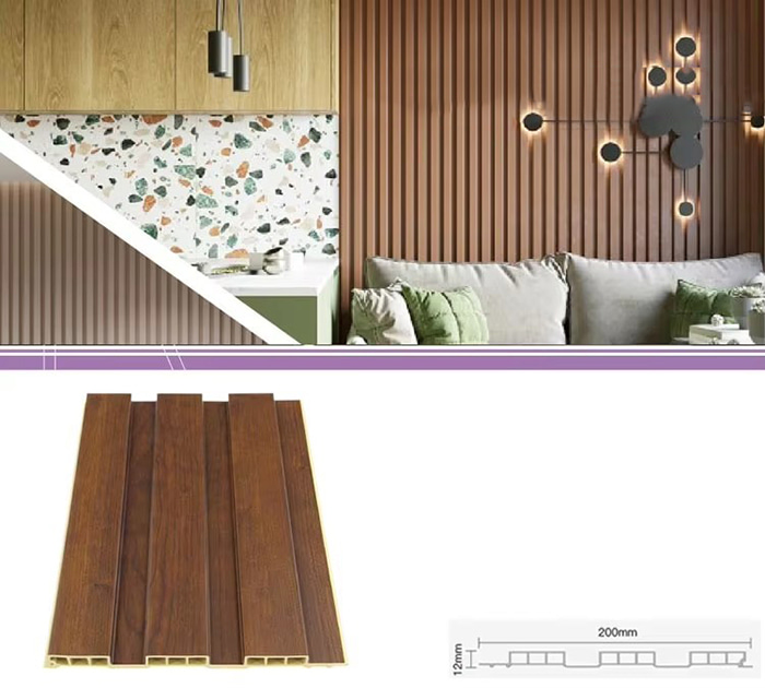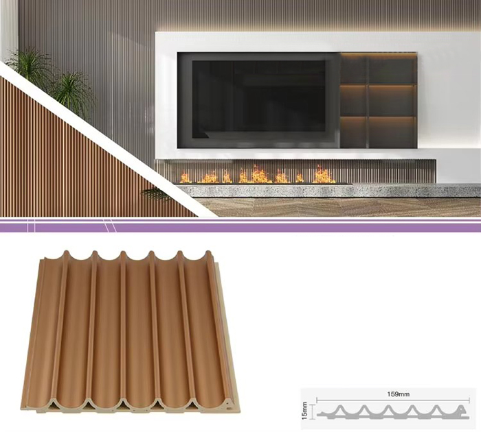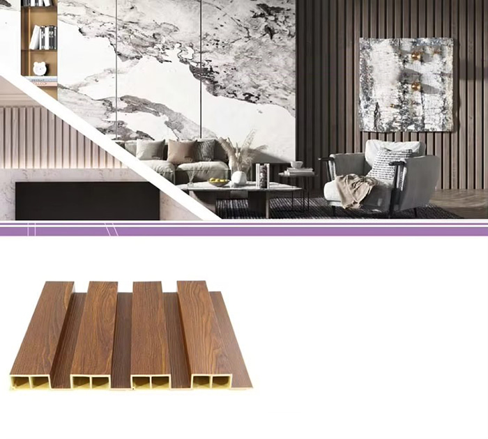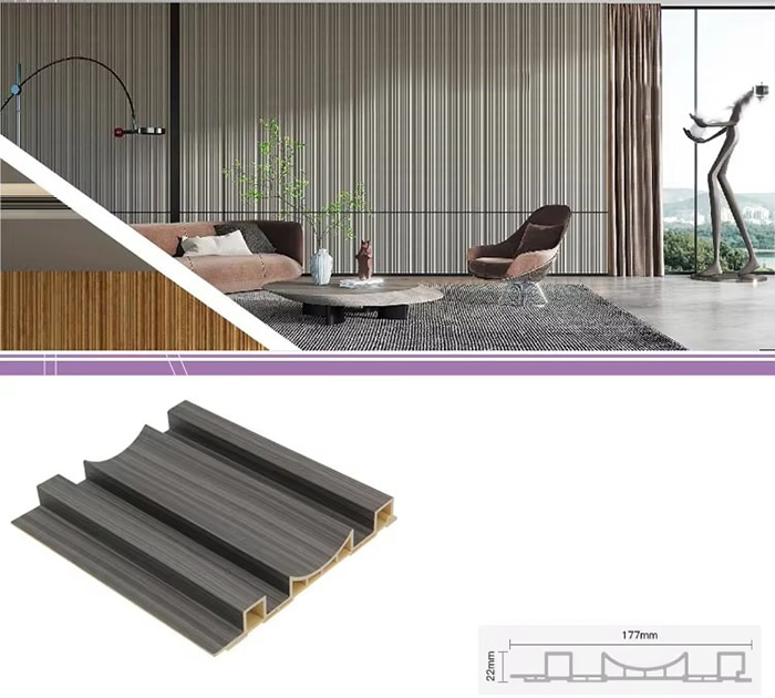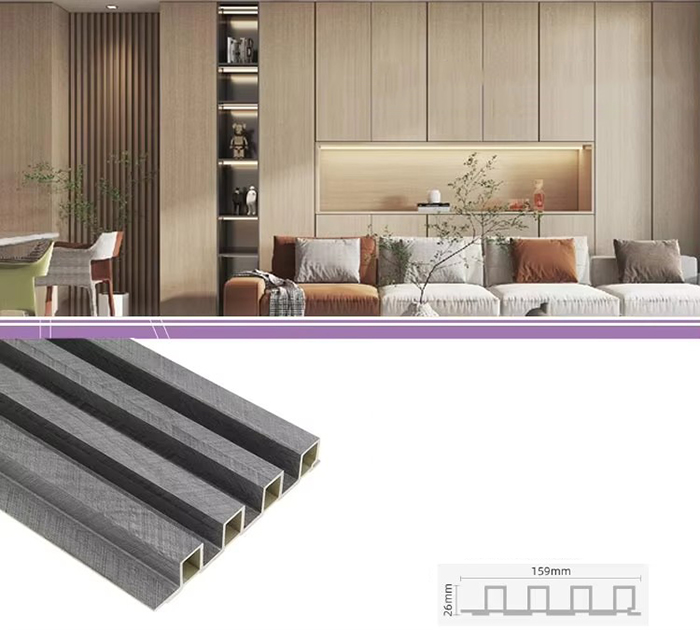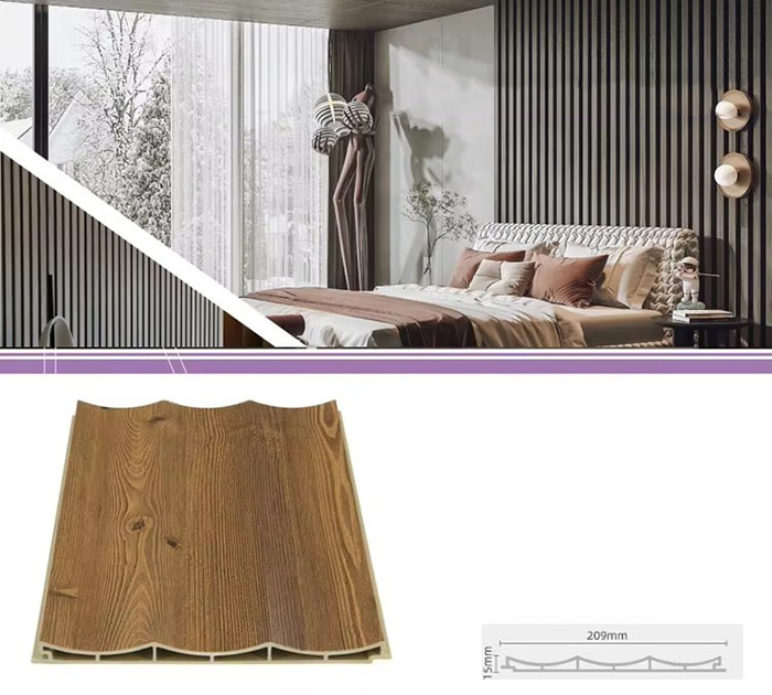 Внутренние панели ДПК, или древесно-пластиковые композитные внутренние панели, представляют собой новый тип экологически чистого строительного материала, изготовленного из древесного волокна или древесного порошка в сочетании с термопластами (такими как полиэтилен, полипропилен или поливинилхлорид). Этот материал изготавливается методом высокотемпературного экструзионного формования, а поверхность обычно декорируется путем ламинирования, 3D-печати или ламинирования пленкой, демонстрируя естественную текстуру и ощущение древесины, а также долговечность и устойчивость к атмосферным воздействиям пластика. Внутренние панели из ДПК не только имеют красивый внешний вид дерева, но также преодолевают такие недостатки древесины, как легкая деформация, поглощение влаги и гниение, что делает их идеальным материалом для внутренней отделки
