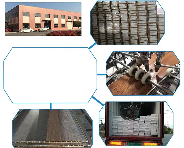 Наша основная продукция включает в себя: потолочные панели из ПВХ, стеновые панели из ПВХ, стеновые панели из ДПК, фольгу для горячего тиснения, ламинирующую пленку из ПВХ, напольные покрытия SPC, настил из ДПК и другие сопутствующие товары. Наш годовой объем продаж может достигать 35 миллионов долларов США.