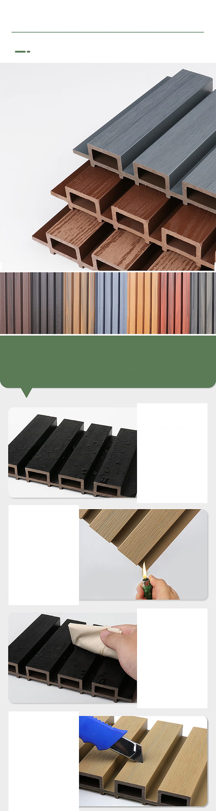 Проверка качества: В процессе производства наружные панели из ДПК строго проверяются на качество, включая точность размеров, плоскостность, плотность, огнестойкость, экологические характеристики и т. д.